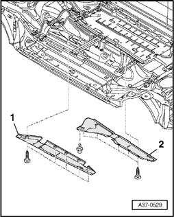 - Remove vehicle floor plates at inside left - 2 - and inside right - 1 -.