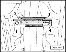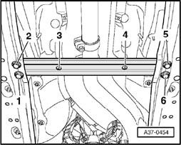 - Remove bolts - 1 through 4 - and remove rear cross member for vehicle floor.