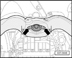 - Remove nuts - 3 - at engine mount on left and right far enough until lower edge of nut is flush with threaded pin - arrow -.