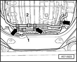 - Remove union nuts - 1 - and - 2 - and disconnect ATF lines.