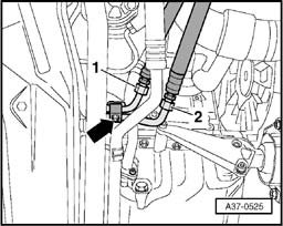 - Disengage electrical harness connector - 1 - and disconnect it from transmission.