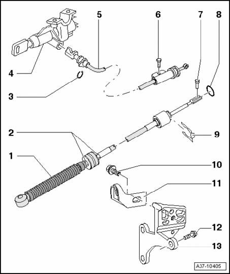 Selector lever cable and locking cable (from VIN 8E_6A156500), assembly overview - 01J, Continuously Variable Transmission (CVT)