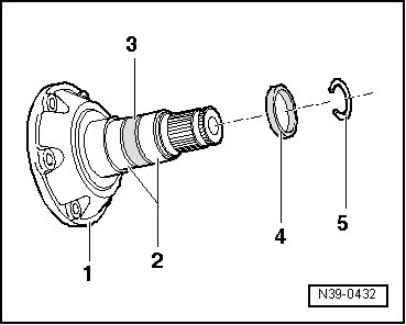 • A spacer ring is installed between the polygon bearing and the differential sun wheel on flange shafts with 30 mm spline diameter, refer to => [ Flange shaft assembly ] , - Item 4 -.