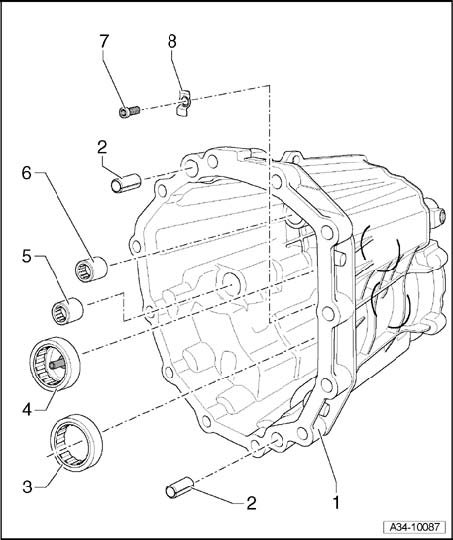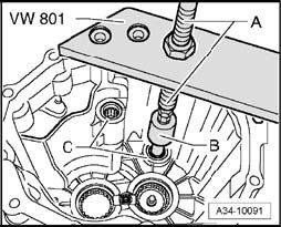Support transmission cover with thrust plate VW 447 i directly below bearing mounting.