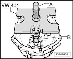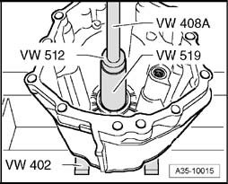 Pressing new roller bearing for output shaft into transmission cover as far as the stop (press in carefully)