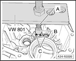 ^ Drive in (for example, with press tool VW 408 A when replacing transmission