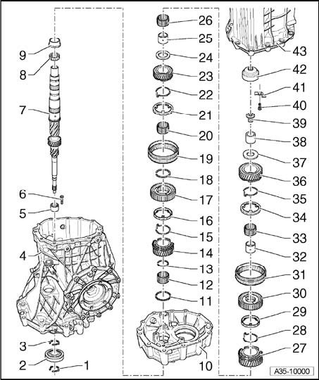Input shaft, assembly overview - 6 Spd. M/T 01X Front Wheel Drive