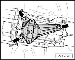 - Secure transmission mounting to transmission - arrows - (tightening torque: 23 Nm).