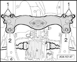 - Remove two nuts - 1 - and push tunnel cross member backward slightly.
