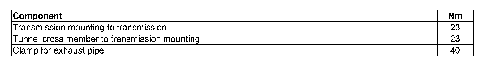Tightening torques