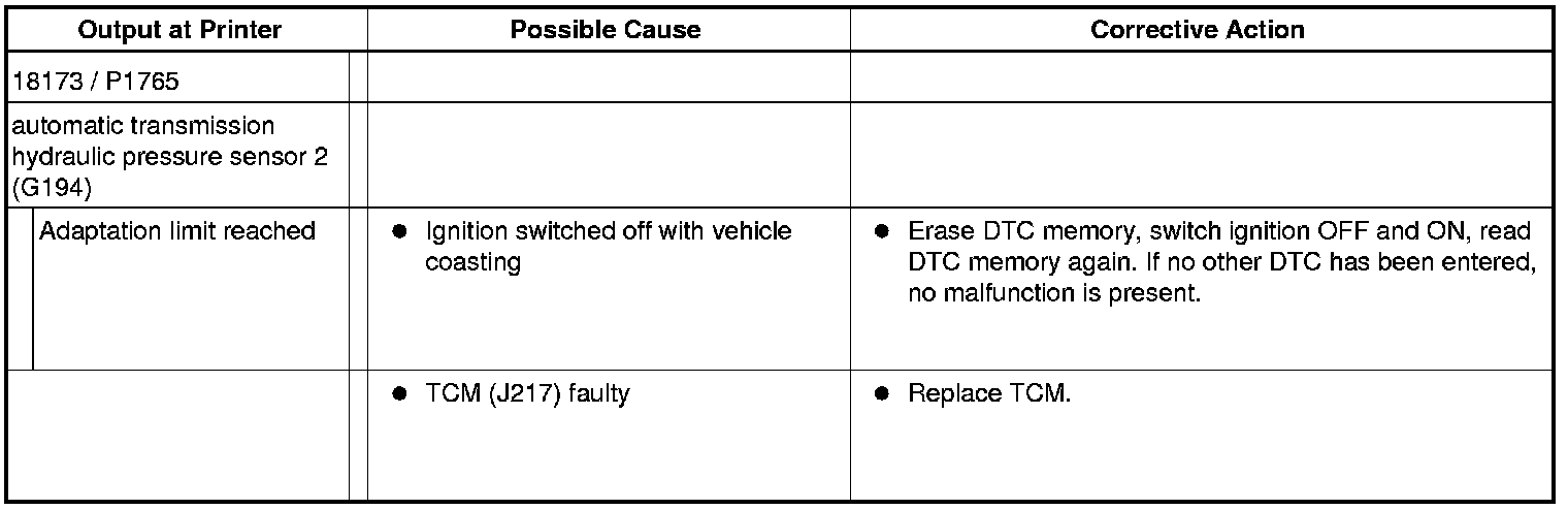 DTC 18173 / P1765: