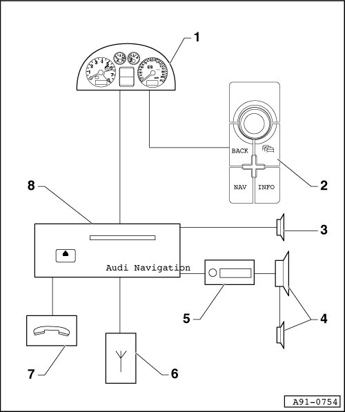 8 Navigation System with CD Drive Control Module ( J401) behind luggage compartment left side trim
