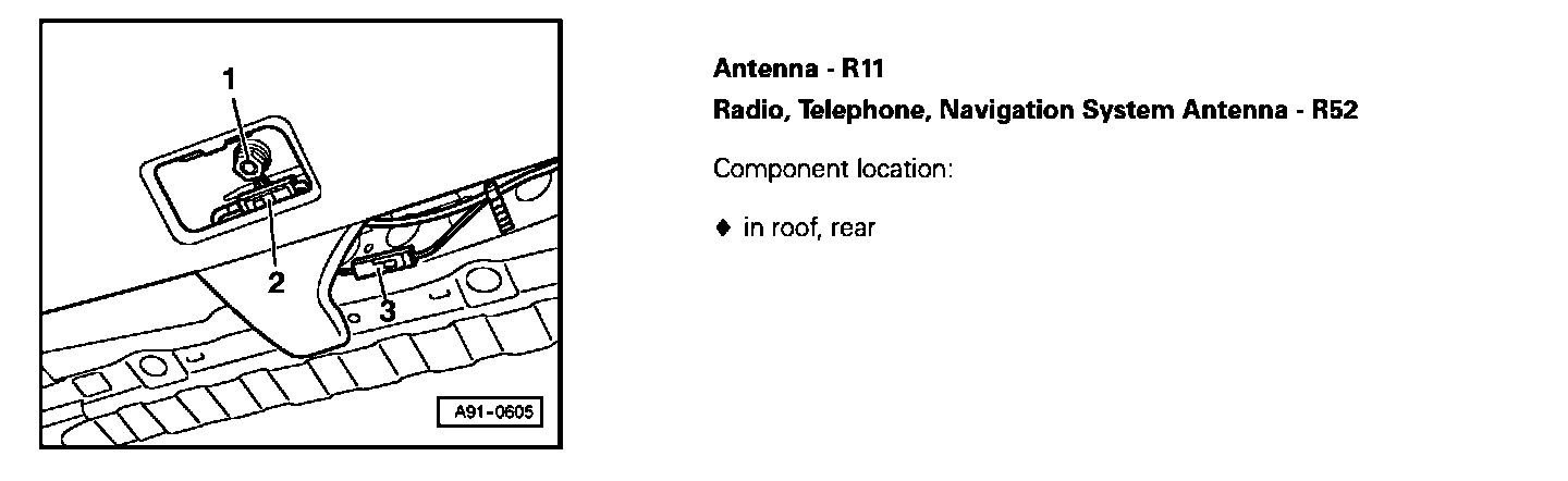 Antenna R11, Radio, Telephone, Navigation System Antenna R52: