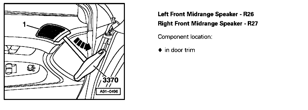 Left Front Midrange Speaker R26, Right Front Midrange Speaker R27: