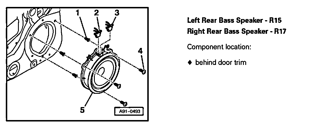 Left Rear Bass Speaker R15, Right Rear Bass Speaker R17: