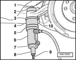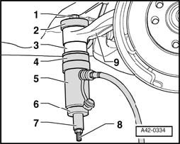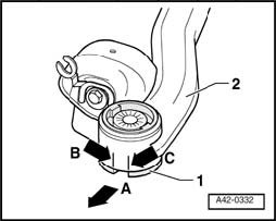^ When removing hydraulic bushing with special tool wheel bearing tool V.A.G 1459 B, you must cut back.
