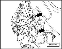 - Remove brake caliper - arrows -. To do so, use socket insert T40027.