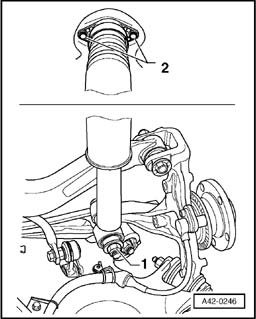- First tighten strut nut - 1 - to 20 Nm.