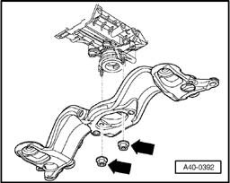 - Support transmission with engine and transmission jack V.A.G 1383 A and a wooden block.