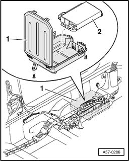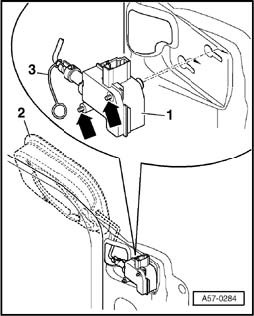 - Loosen bolts - arrows - using special tool T10010, slide actuator - 1 - toward front and remove.