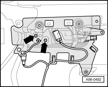 - Disconnect connector - 1 - at mirror adjuster switch - 2 -.