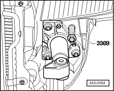 • On the left side, screw in special tool 3369 in threaded hole => [ Screw in special tool 3369 ]