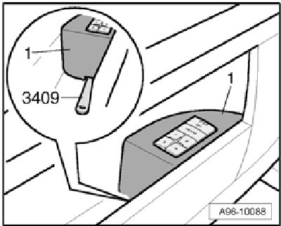 - Remove switch - 1 - using removal wedge 3409 as illustrated.