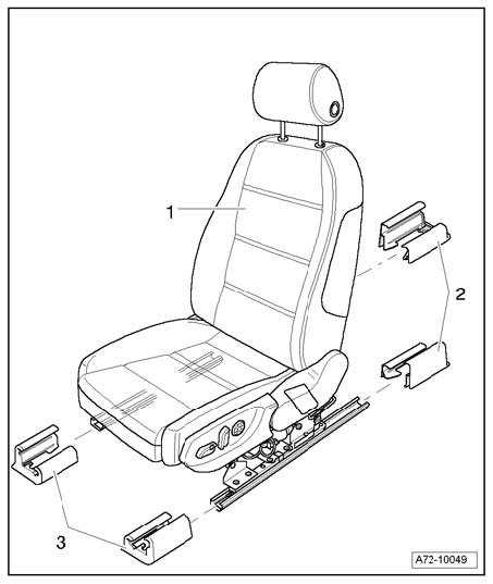 - Pry out seat rail cover - 2 - from beneath or - 3 - on the inside.