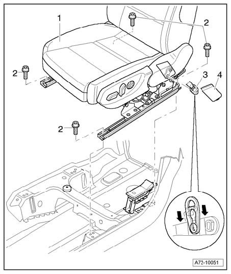 - With help from a second mechanic, lift front seat - 1 - out of vehicle.