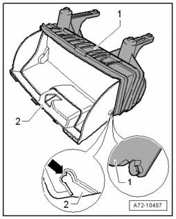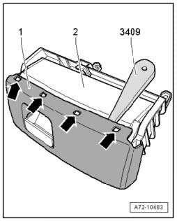 - Using Trim Removal Wedge 3409, unclip trim - 1 - from retaining tabs - arrows - (Qty. 4) on inner part - 2 -.