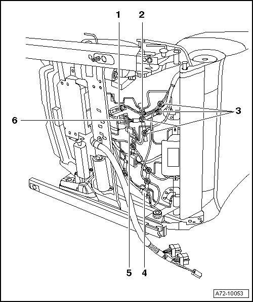 - Push cushion aside and carefully disconnect wiring harness - 3 - from seat pan - 10 -.