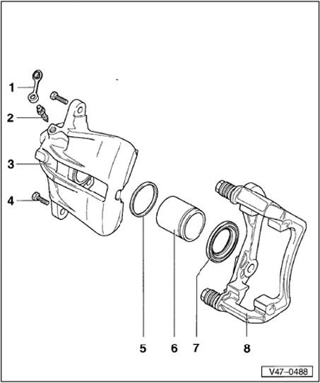 ^ Apply thin coat of lithium grease G 052 150 A2 to brake cylinder, piston and seal.