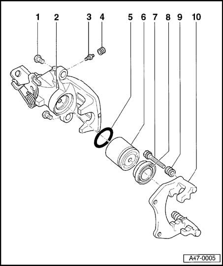 ^ Apply thin coat of lithium grease G 052 150 A2 to brake cylinder, piston and seal.