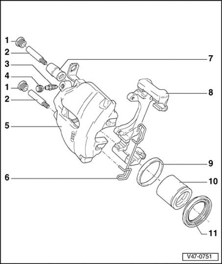^ Apply thin coat of lithium grease G 052 150 A2 to brake cylinder, piston and seal.