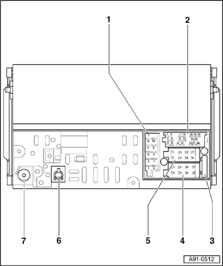 7 - HF connection (black) to Antenna Selection Control Module J515 / Left Antenna Module R108