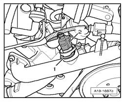 - Remove retaining clip -1- and Engine Coolant Temperature (ECT) Sensor G62.