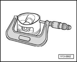 - Measure approximately 10 mm from the lower edge at a 90 degree angle to the piston pin axis using an external micrometer 75 to 100 mm.