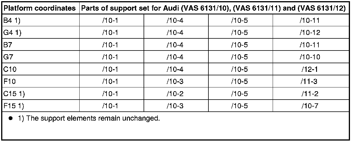 • Support set for Audi (VAS 6131/10), (VAS 6131/11) and (VAS 6131/12)