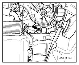 - Remove sealing plug - arrow - from cylinder block.