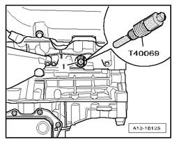 ^ Secure crankshaft -1- in TDC position using crankshaft holder T40069.