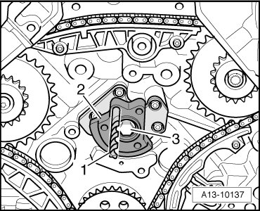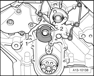 • Secure crankshaft - 1 - in TDC position using crankshaft holder (T40069).