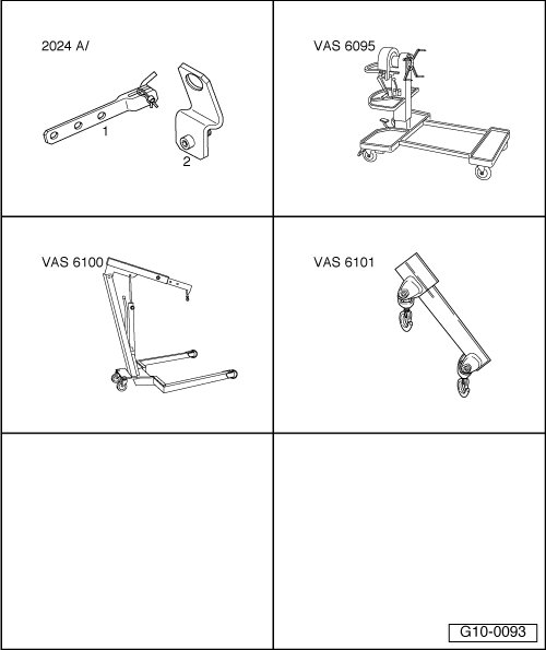 • Engine and transmission holder (VAS 6095) with bracket (VAS 6095/1-5)