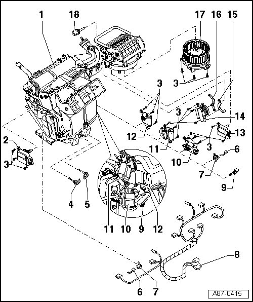 • The fresh air blower control module (J126) is installed in the fresh air blower (V2) and cannot be replaced separately.