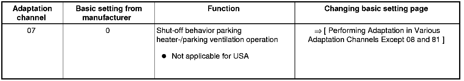 The shut-off function for the parking heater can be entered in adaptation channel "07" by the Climatronic control module (J255) A/C control head. The activation of the parking heater can also be set via the adaptation function (adaptation channel "18 ") in the instrument cluster control module (J285 ). Not applicable for USA