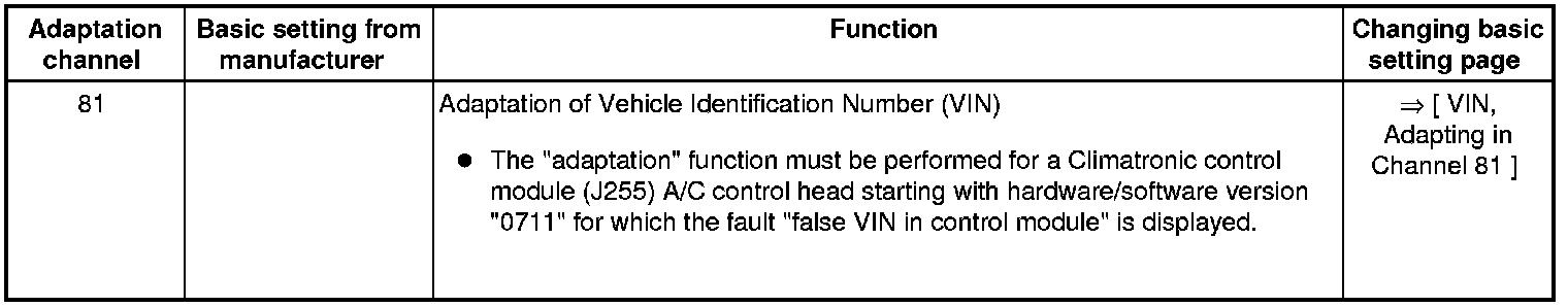 Adaptation channels "08", "09", and " 81" are only provided for a Climatronic control module (J255) A/C control head from hardware/software version " 0711".