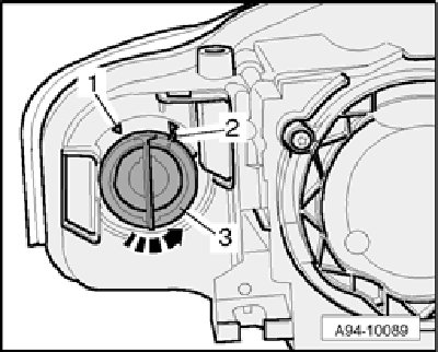 - Turn bulb holder - 3 - counter-clockwise - arrow - and pull out from housing.