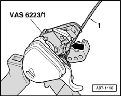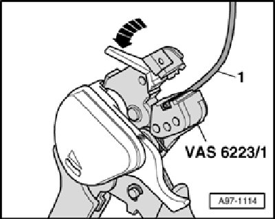 - Open Pliers For Fiber Optic Conductor VAS 6223/1 and remove fiber-optic cable - 1 -.