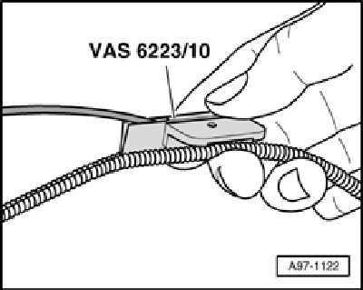- Guide fiber-optic cable into Crimping Pliers For Fiber-optic Cable VAS 6223/10 as shown in illustration.