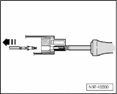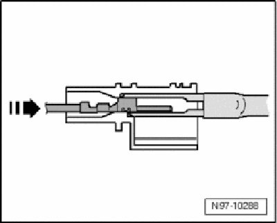 - Grasp contact at wire and push gently into terminal housing - arrow -.