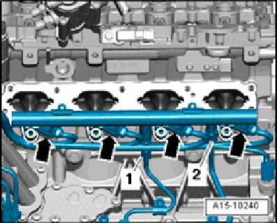 - Disconnect the Fuel Injector electrical harness connector - arrow - from the Fuel Injector to be tested.